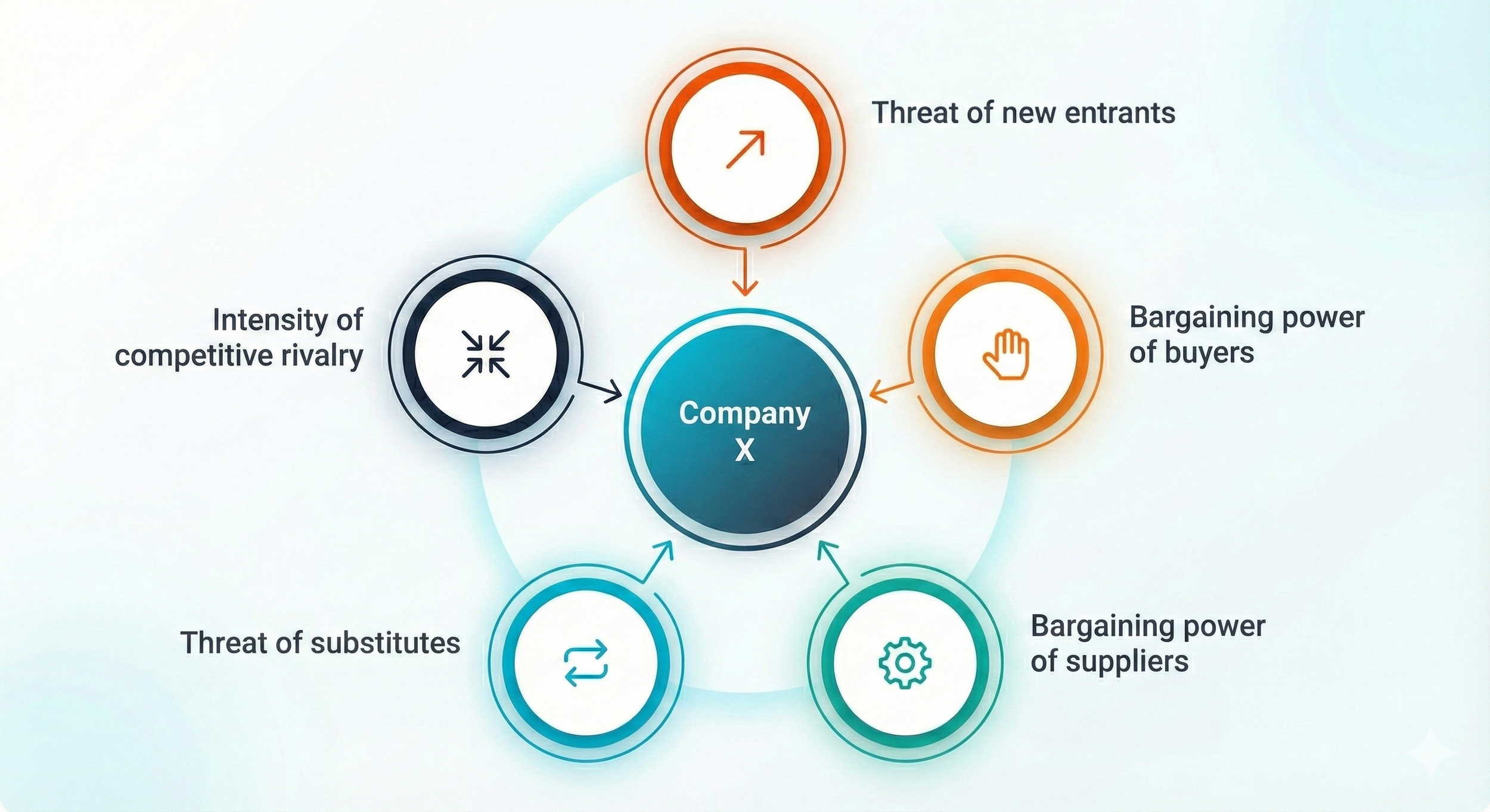 Originally designed as a competitive framework, it analyzes the five main forces that shape a company’s competitive environment:
